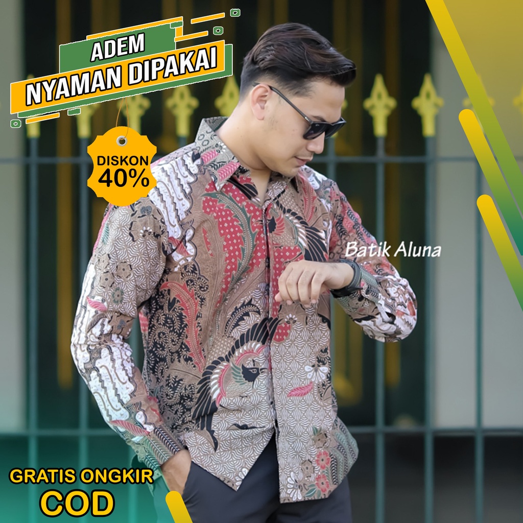 Promo Pakaian di Kabupaten Sumba Barat Baju Batik Pria Lengan Panjang Slim Fit Kemeja Batik Modern Furing Jawa Solo Slimfit Premium Pcw011 dari Batikaluna.sragen Kab. Sragen