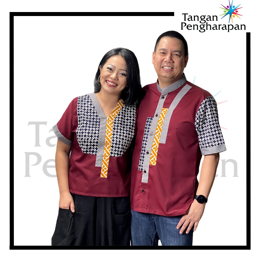 Name: Kemeja Dan Blouse Batik Couple Merah Marun Tangan Pengharapan
