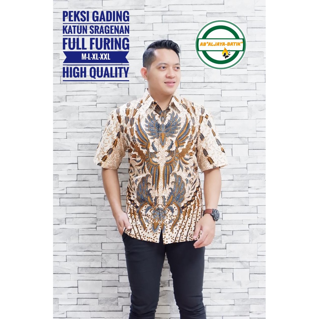 Name: Peksi Gading Pendek Kemeja Batik Pria Full Furing Bahan Katun Sragenan