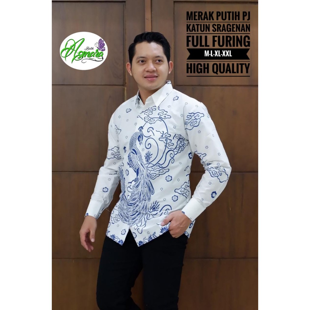 Name: Merak Putih Panjang Kemeja Batik Pria Full Furing Bahan Katun Halus Sragenan