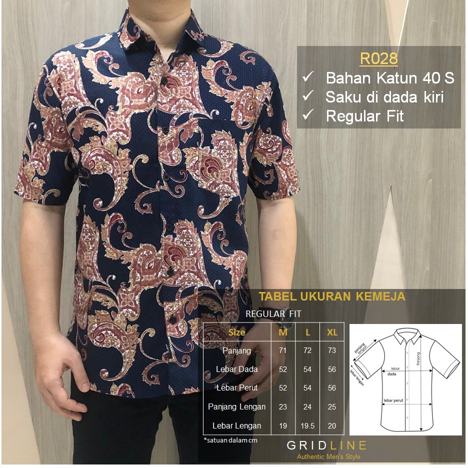 Name: [gridline - R028] Kemeja Batik Pria Katun Lengan Pendek Regular Batik