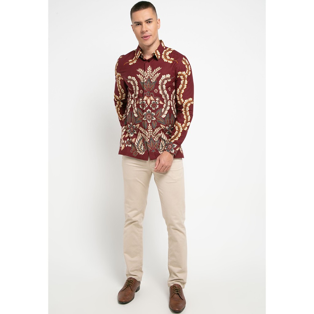 Kemeja batik pria dengan cutting modern fit. Batik Arthesian menggunakan bahan katun yang adem dan berkualitas tinggi. Cocok digunakan di acara formal maupun casual karena motifnya yang unik dan menarik.