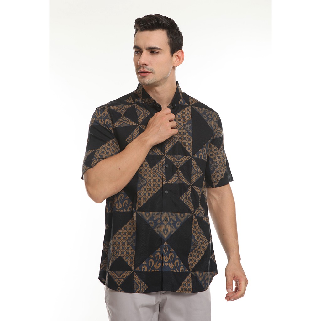 Pusat Grosir Pakaian di Kabupaten Sumba Timur Manzone Kemeja Batik Pria Lengan Pendek Comfort Fit Pranjataka-black dari Manzone Kota Jakarta Selatan
